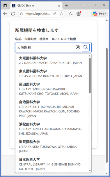 2)直下に候補が現れますので、「大阪医科薬科大学」を選択してください。