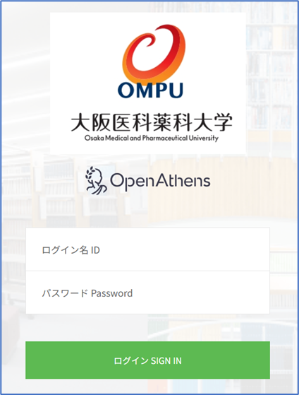 3)「続行」ボタンを押しますと、本学OpenAthensのログイン画面が表示されます。